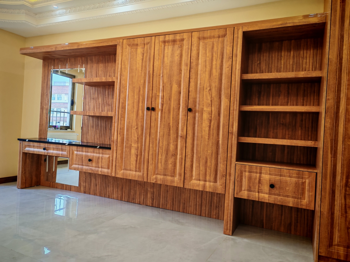 کابینت وکیوم با روکش چوب و طرح نئوکلاسیک با صفح کابینت کورین-کمد وکیوم با روکش طرح چوب